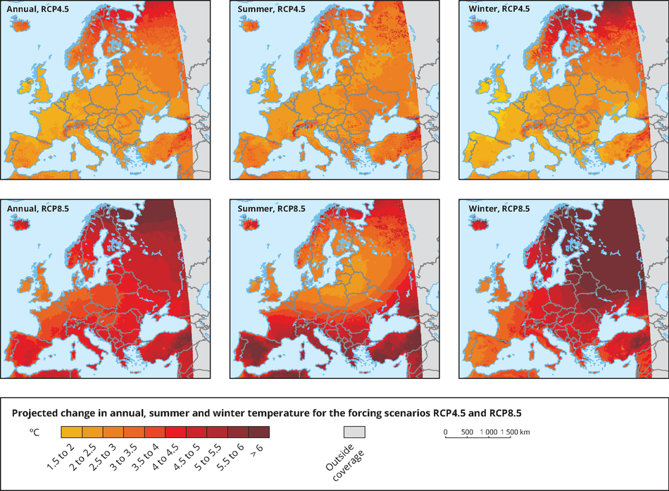 Durante esta semana hemos vivido la primera ola de calor de este verano. No debemos de extrañarnos ya que es lo que nos vienen anunciando desde hace tiempo en relación al cambio climático . Según la Agencia Europea de Medio Ambiente see prevé que las temperaturas en toda Europa continúen aumentando a lo largo de este siglo. Las proyecciones de la iniciativa EURO-CORDEX sugieren que las áreas terrestres europeas se calentarán más rápido en promedio que las áreas terrestres globales . Según la media del conjunto de varios modelos, se proyecta que las áreas terrestres europeas se calienten en el rango de 1 a 4.5 ° C para el escenario RCP4.5 y en el rango de 2.5 a 5.5 ° C para el RCP8.5 durante el siglo XXI ( 2071–2100 en comparación con 1971–2000) . El calentamiento más fuerte se proyecta en el noreste de Europa y Escandinavia en invierno y en el sur de Europa en verano Las simulaciones de modelos se basan en el promedio de conjunto de modelos múltiples de simulaciones de RCM de la iniciativa EURO-CORDEX. Se proyecta que las olas de calor serán más frecuentes y más duraderas en toda Europa durante este siglo [9] . Las proyecciones basadas en un conjunto de varios modelos coinciden en el aumento de la frecuencia y magnitud de las olas de calor para la mayoría de las regiones europeas durante el siglo XXI en todos los escenarios de RCP. Las olas de calor extremo de verano, como las que se experimentaron en diferentes partes de Europa en 2003 y 2010, serán mucho más comunes en el futuro. Los riesgos más graves para la salud se proyectan para las cuencas hidrográficas de baja altitud en el sur de Europa y para las costas mediterráneas, donde se encuentran muchos centros urbanos densamente poblado